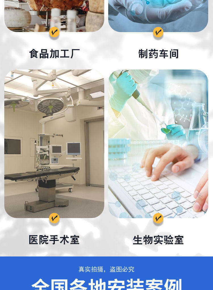 微細(xì)科技、生物實(shí)驗(yàn)室、制藥廠、醫(yī)院、食品加工業(yè)、LCD、電子廠