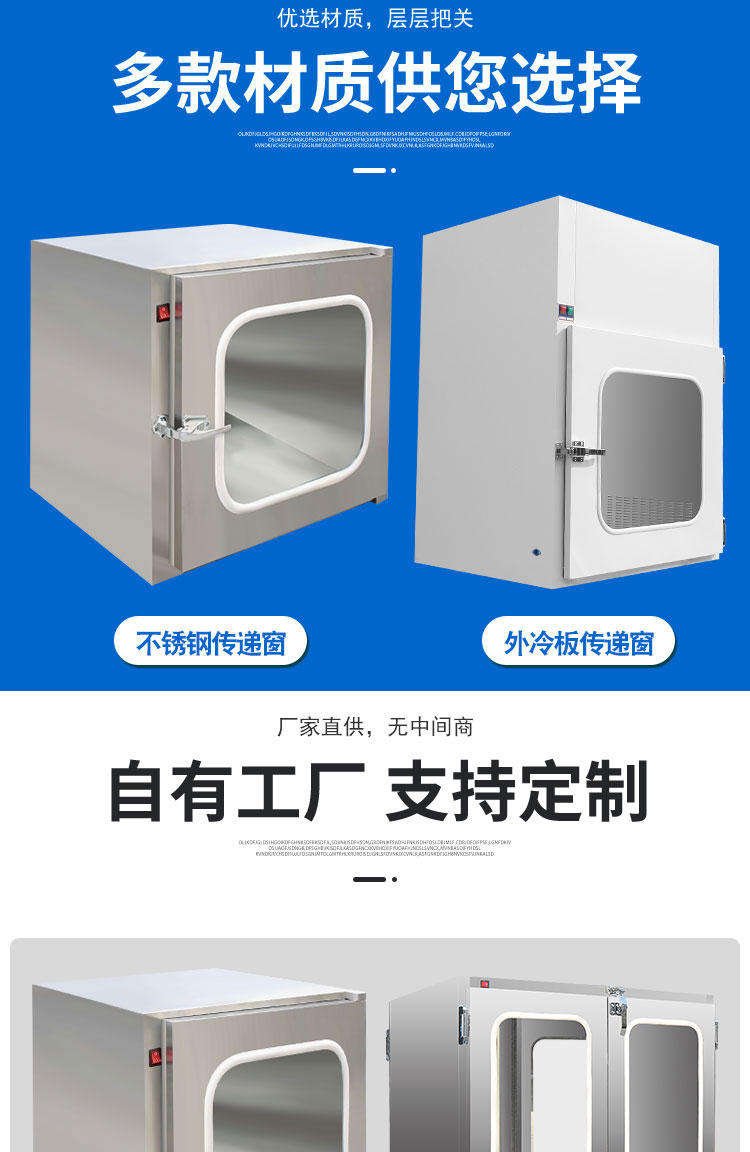 不銹鋼傳遞窗主要分201不銹鋼傳遞窗和304不銹鋼傳遞窗。不銹鋼傳遞窗作為潔凈室的一種輔助設(shè)備,主要用于潔凈區(qū)與潔凈區(qū)、非潔凈區(qū)與潔凈區(qū)之間的小件物品的傳遞,以減少潔凈室的開門次數(shù),**大限度的降低潔凈區(qū)的污染。